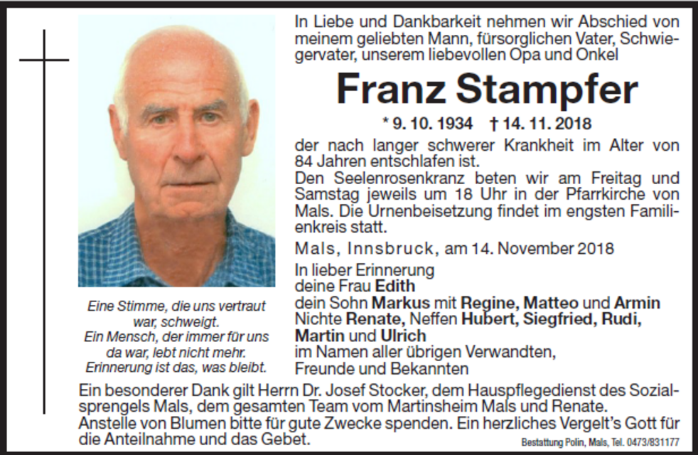 Ein herzliches Vergelt’s Gott für die Anteilnahme und das Gebet.