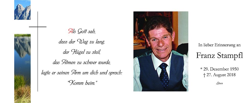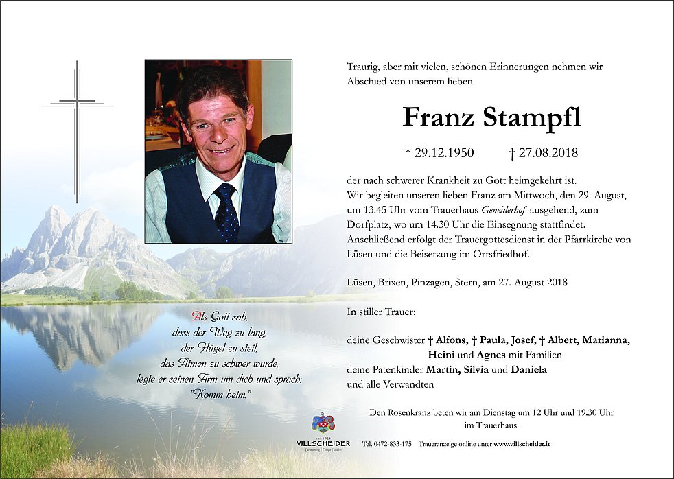 Anschließend erfolgt der Trauergottesdienst in der Pfarrkirche von Lüsen und die Beisetzung im Ortsfriedhof.