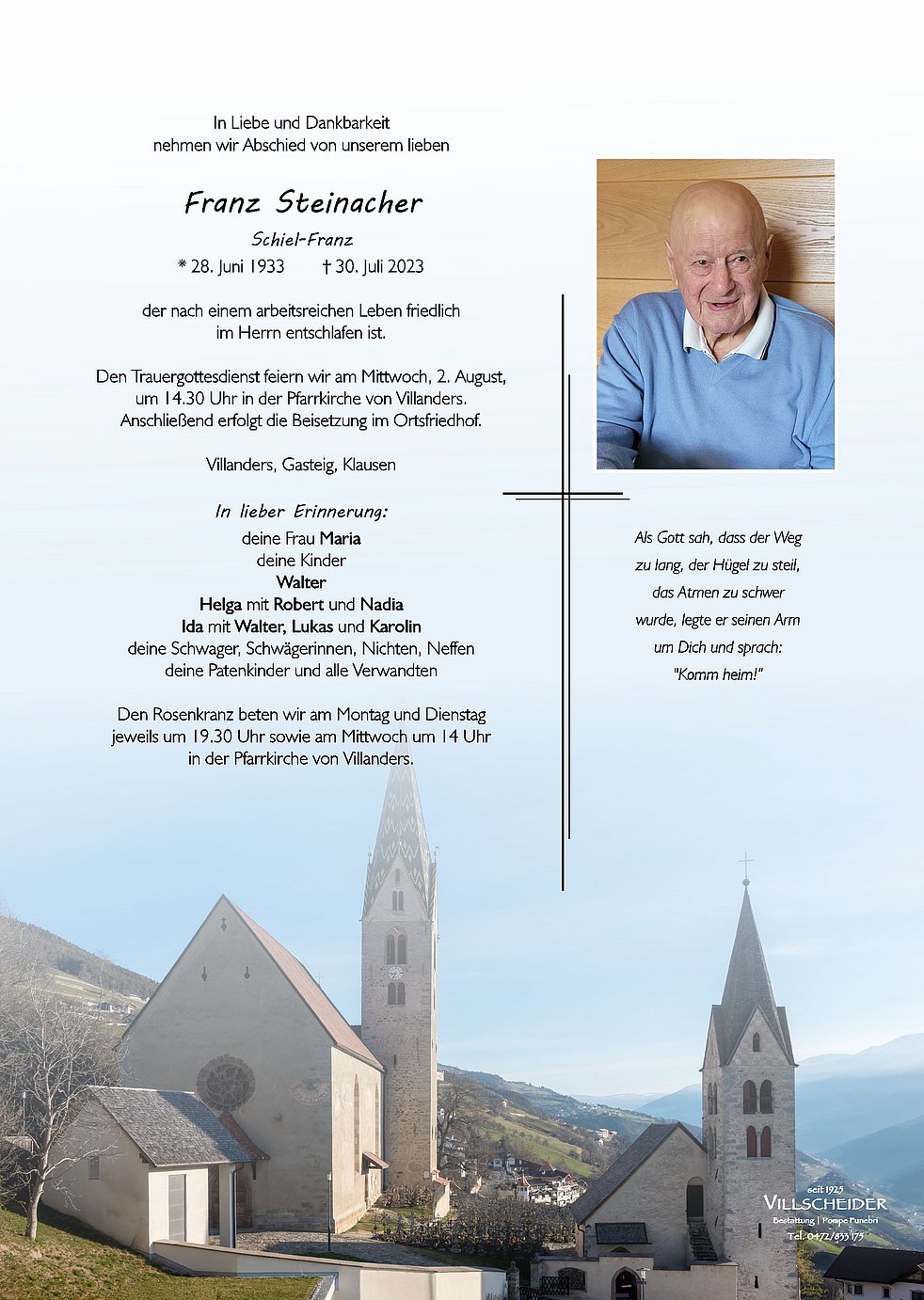Trauerfeier: 02.08. - 14:30 Uhr Villanders
