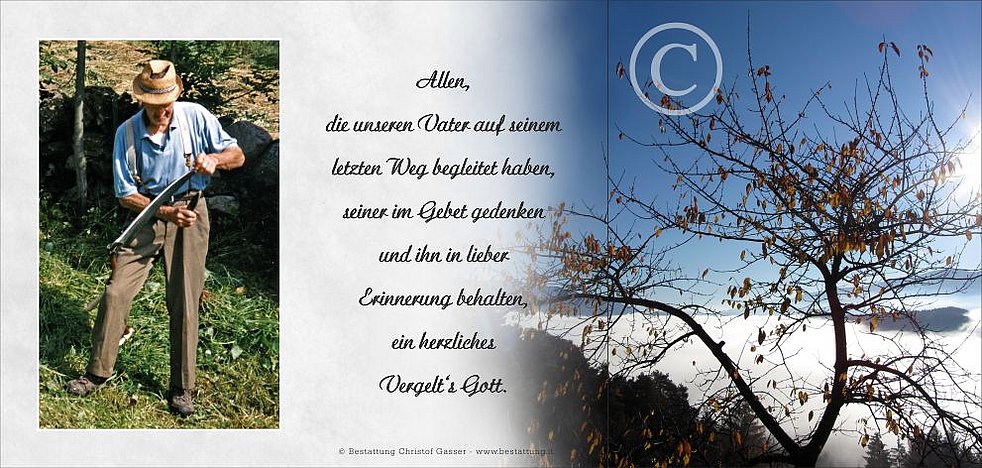 Allen, die unseren Vater auf seinem letzten Weg begleiten, seiner im Gebet gedenken und ihn in lieber Erinnerung behalten, ein herzliches Vergelt‘s Gott.