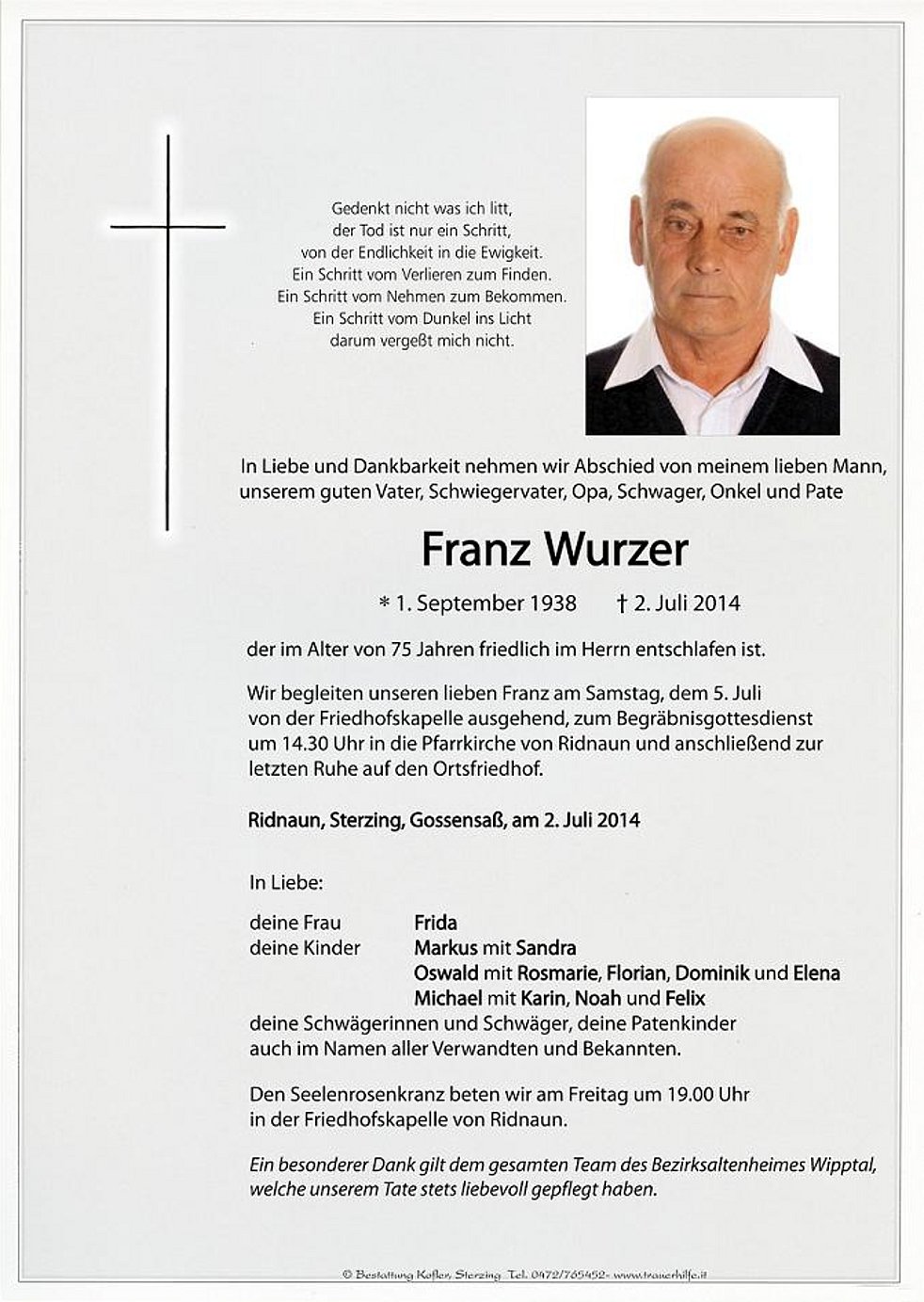 Wir begleiten unseren lieben Franz am Samstag, dem 5. Juli