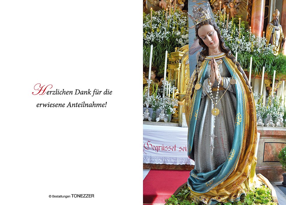 Allen, die an den Seelenrosenkränzen und an der Beerdigung teilnehmen, ein recht herzliches Vergelt’s Gott.