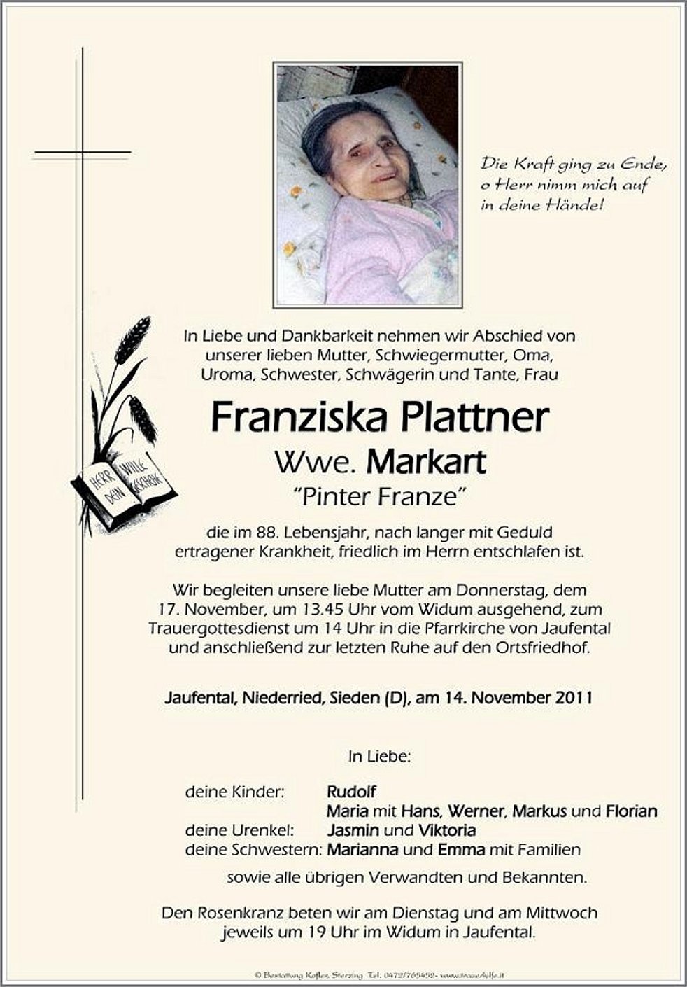 die im 88. Lebensjahr, nach langer mit Geduld ertragener Krankheit,