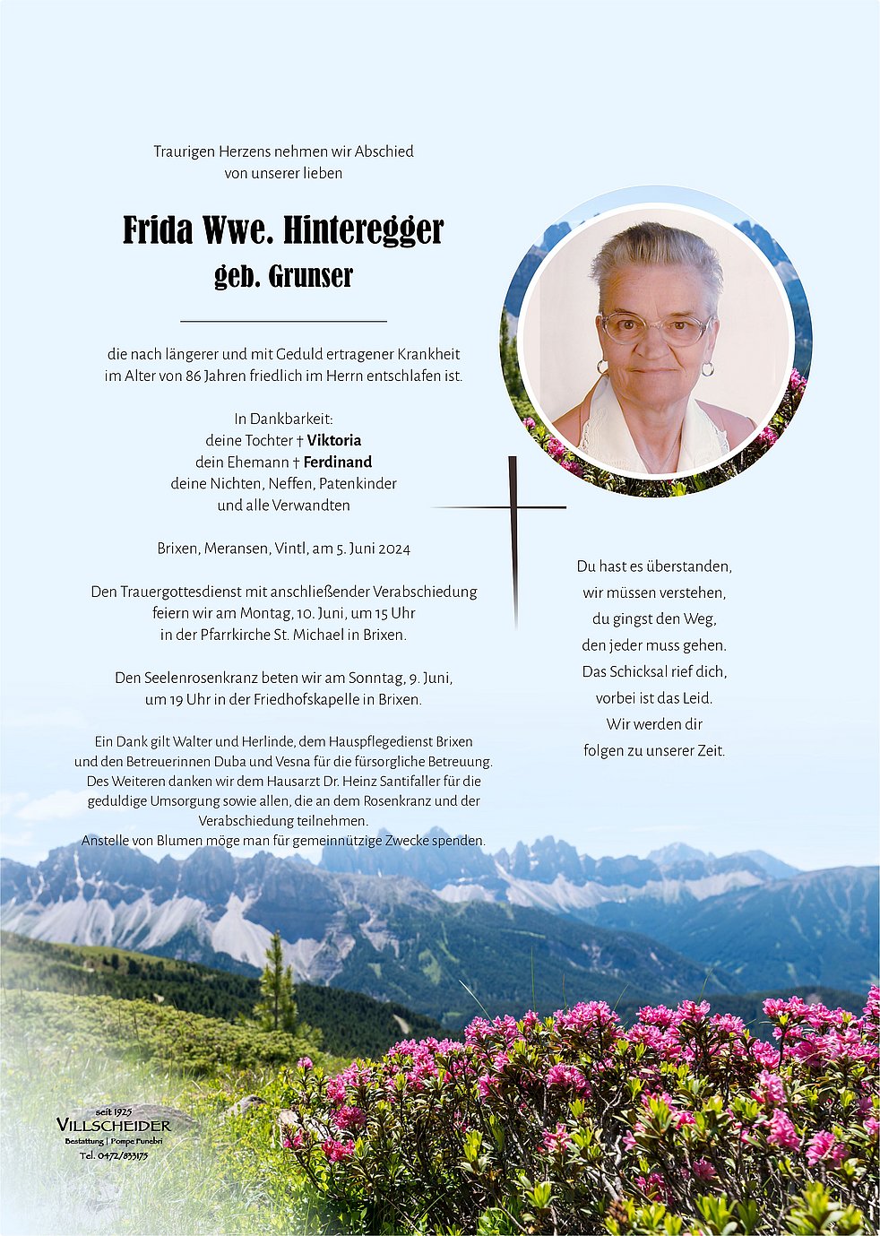 Trauerfeier: 10.06. - 15:00 Uhr Brixen