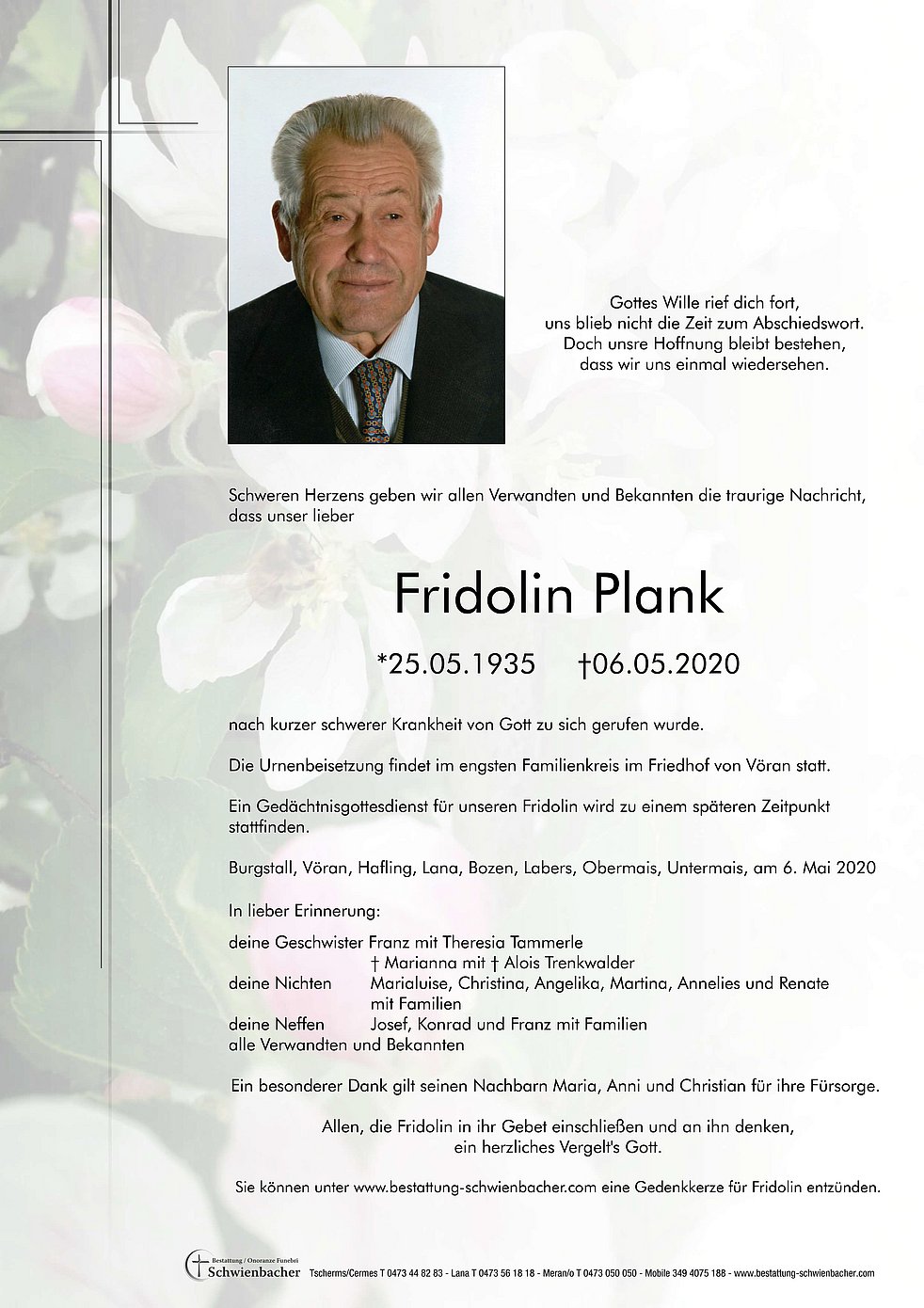 Ein Gedächtnisgottesdienst für unseren Fridolin wird zu einem späteren Zeitpunkt stattfinden.