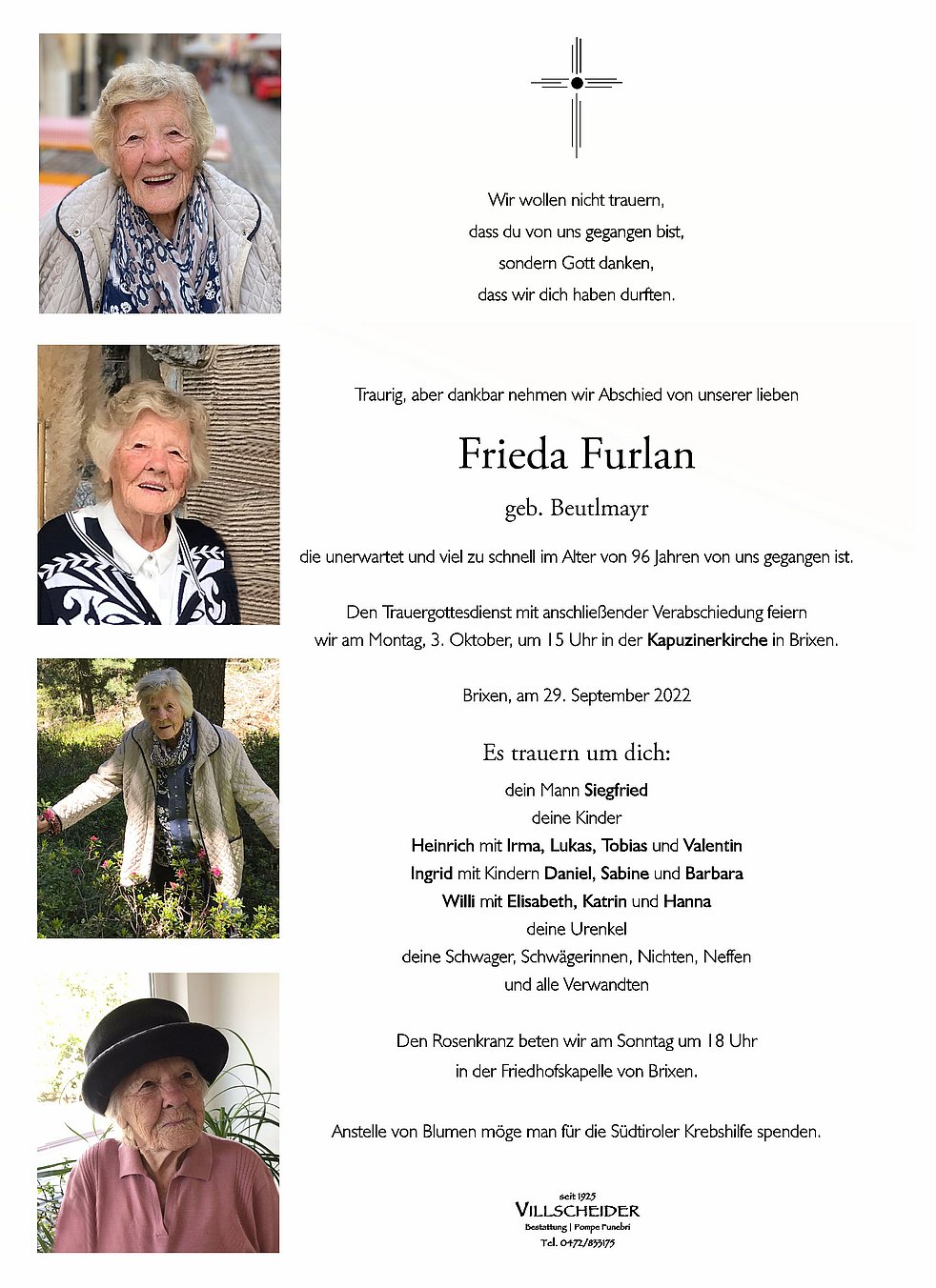 Liebste Frieda, es tut weh, Dich gehen zu lassen, aber die unendlich schönen und lustigen Momente mir Dir, kann mir niemand nehmen, diese bleiben in meinen besten und liebsten Erinnerungen! Lebe wohl und schaue nun von oben auf uns.......Liebe Ingrid, Deine liebe Mami wird uns immer in ganz lieber und enger Verbindung halten, sei nicht traurig, sie ist und bleibt stets unter uns, für immer!!!!!!