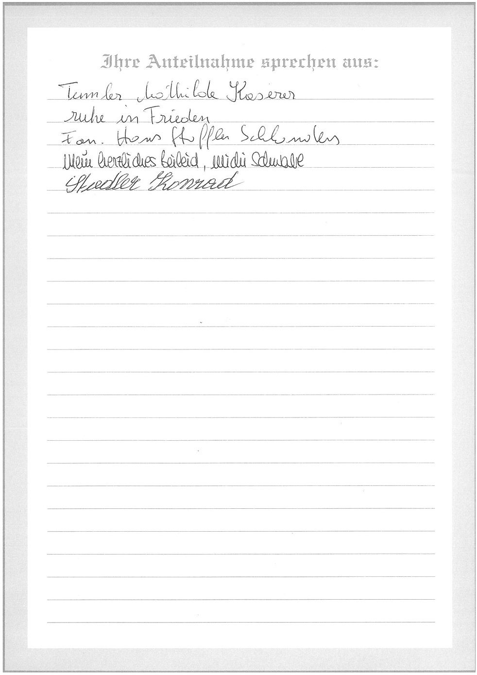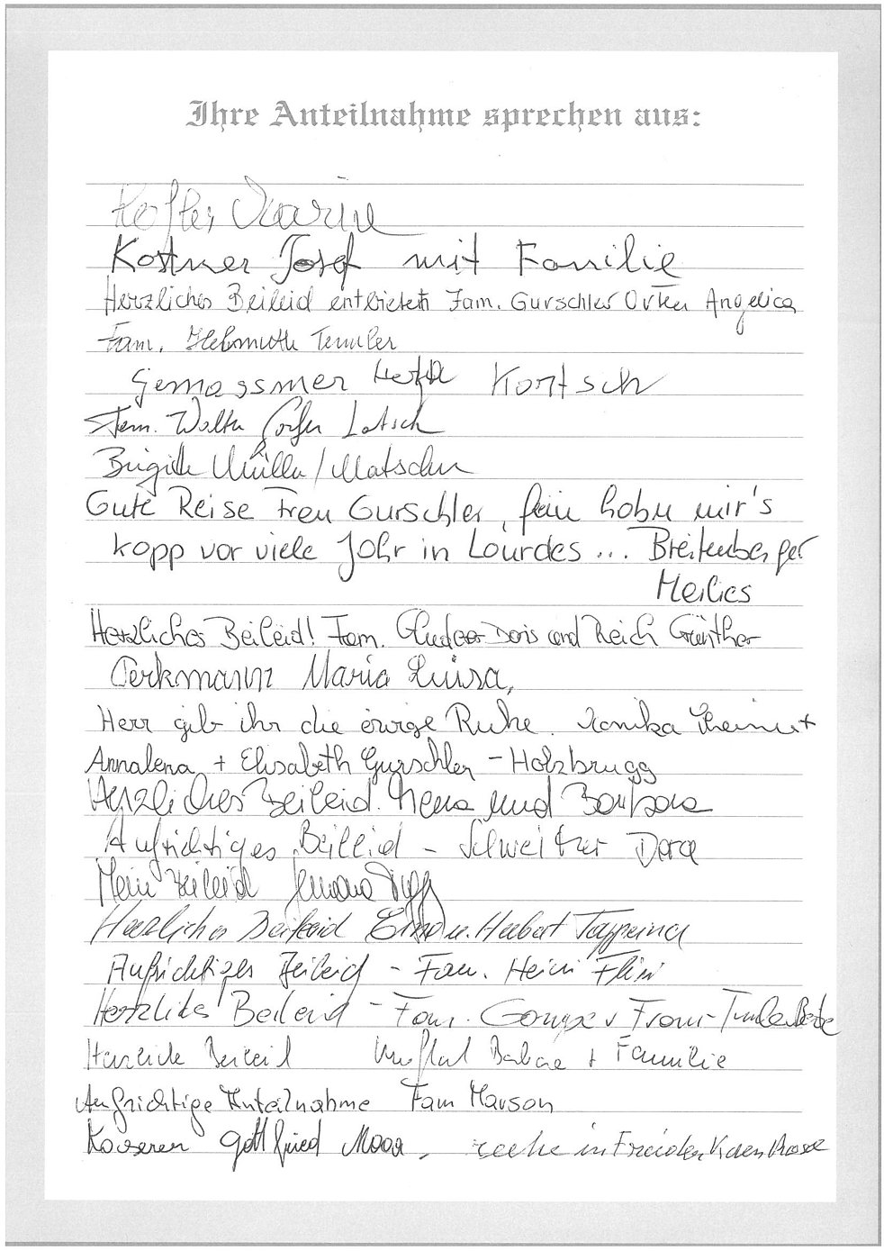Allen, die an den Seelenrosenkränzen und an der Beerdigung teilnehmen, ein recht herzliches Vergelt’s Gott.