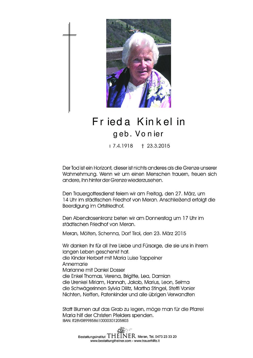 14 Uhr im städtischen Friedhof von Meran. Anschließend erfolgt die