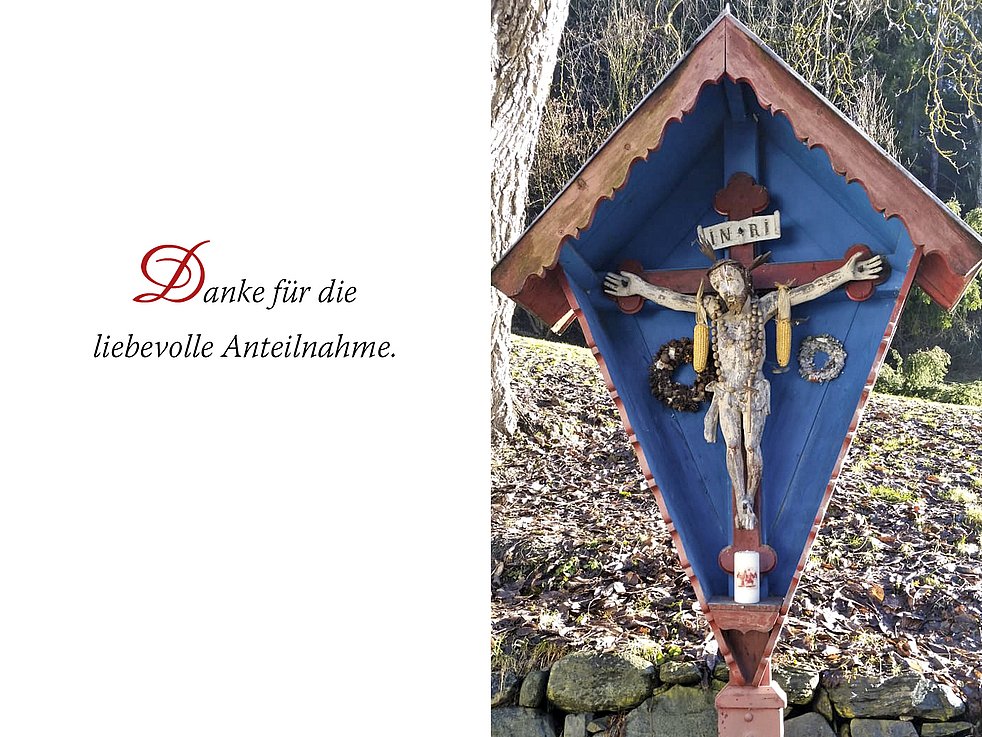 Gedankt sei den Ärzten und dem Pflegepersonal des Bürgerheimes Brixen, 5. Wohnbereich und Frau Gisela für die liebevolle Betreuung sowie allen, die an den Rosenkränzen und an der Verabschiedung teilnehmen.