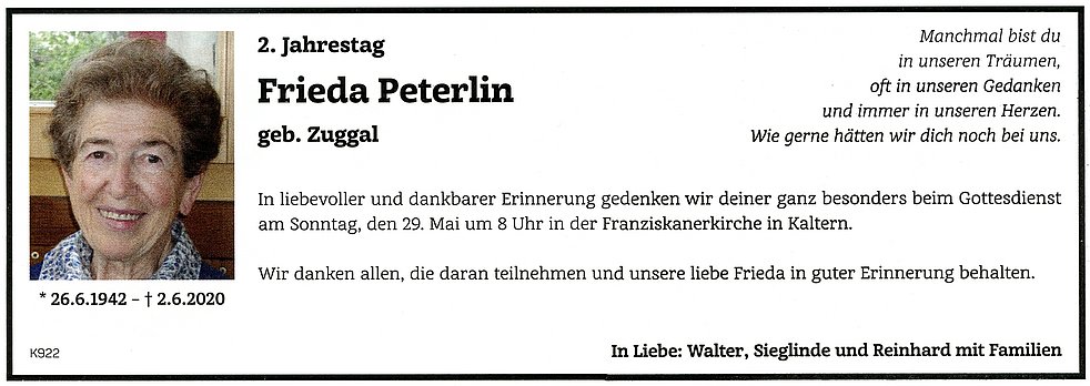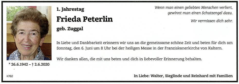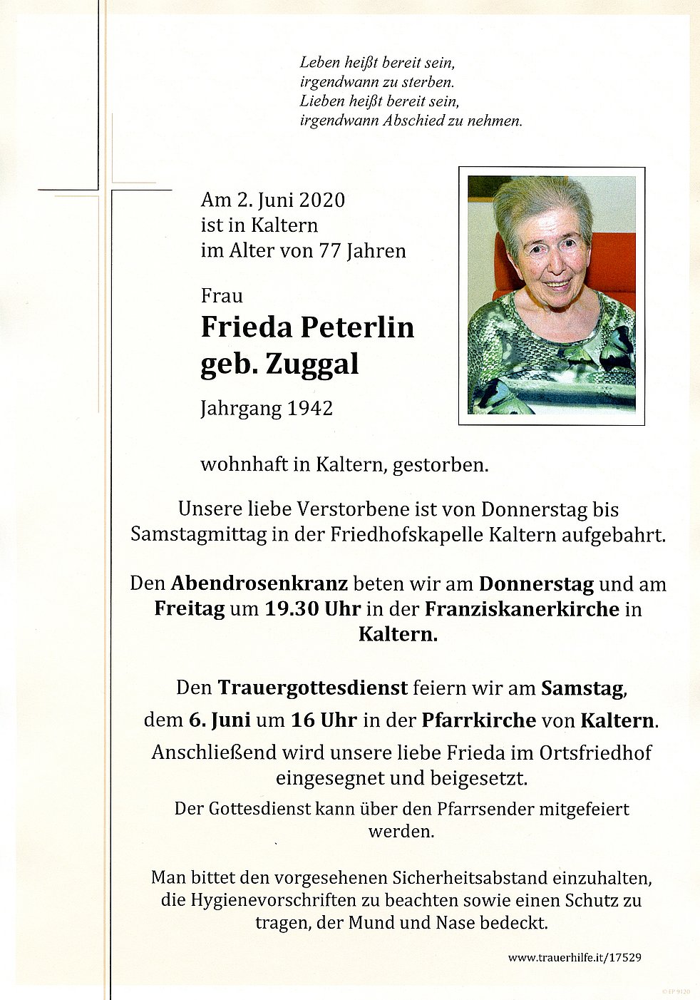 Den Trauergottesdienst feiern wir am Samstag, dem 6. Juni um 16 Uhr in der Pfarrkirche von Kaltern.