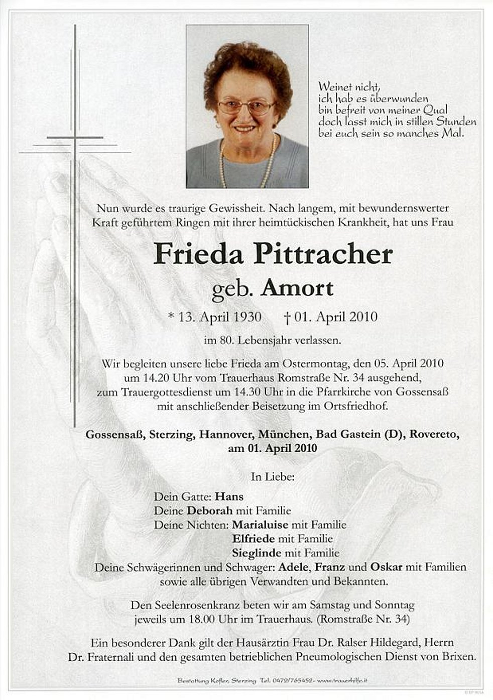 Wir begleiten unsere liebe Frieda am Ostermontag, den 05. April 2010