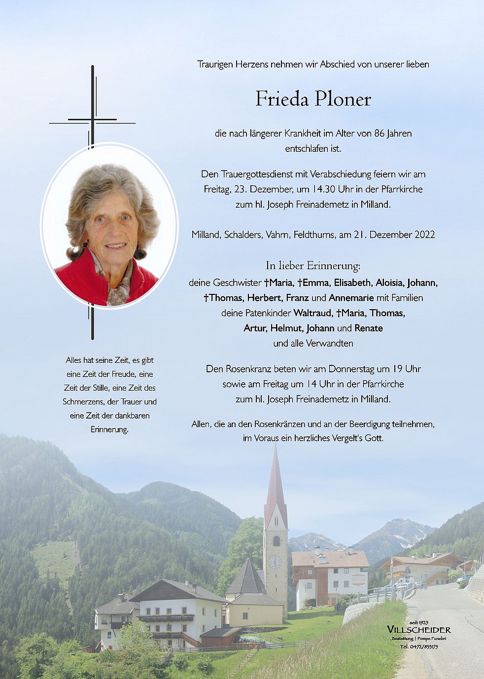 Danke Frieda für die schianen Erinnerungen. Ruhe in Gottes Hände