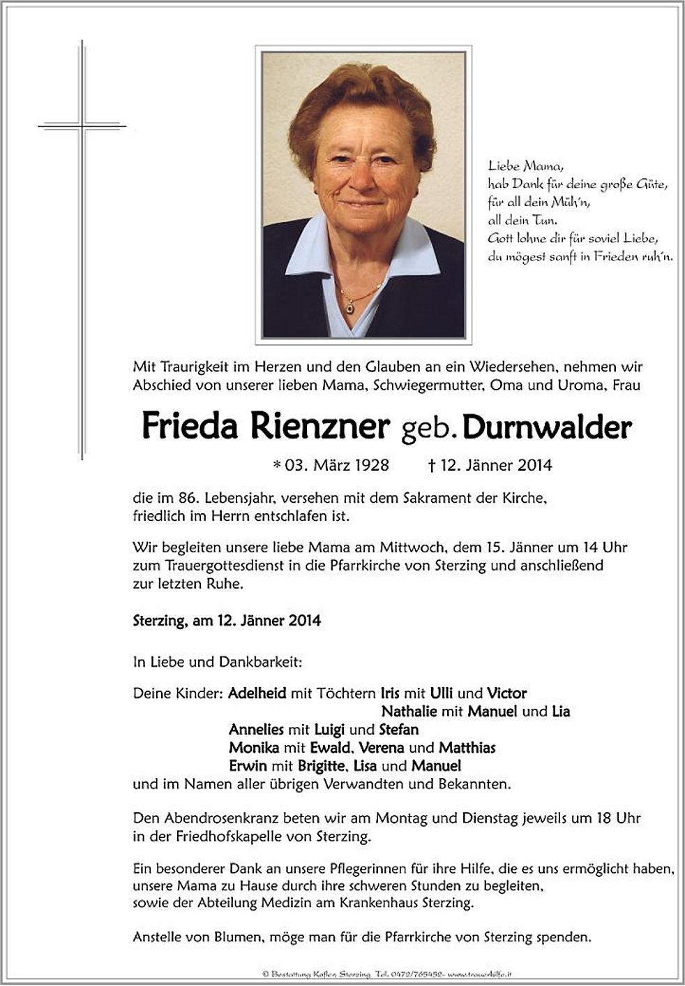 Frieda Rienzner geb. Durnwalder