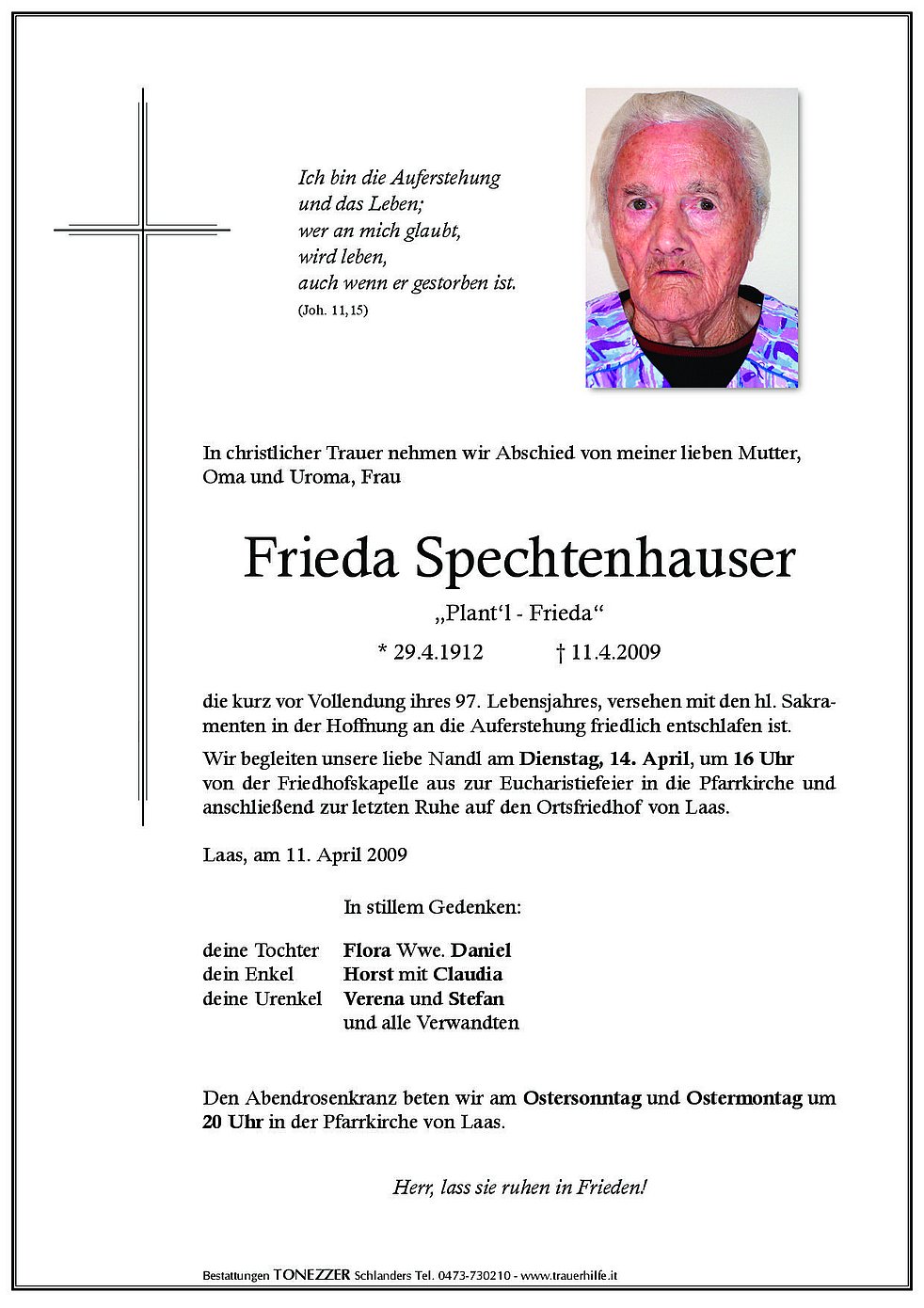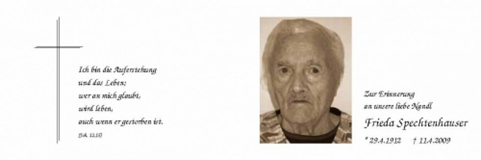 die kurz vor Vollendung ihres 97. Lebensjahres, versehen mit den hl. Sakramenten in der Hoffnung an die Auferstehung friedlich entschlafen ist.