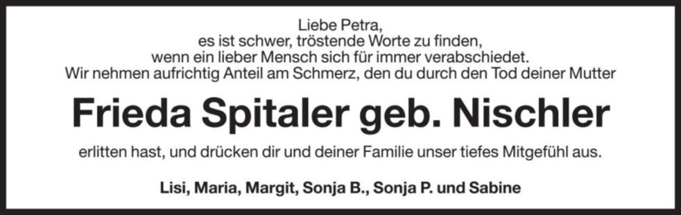 Dankbar für die schöne Zeit, die wir gemeinsam erleben durften, nehmen wir Abschied von unserer geliebten Mama, Schwiegermama, Oma, Schwester, Schwägerin und Tante Frau