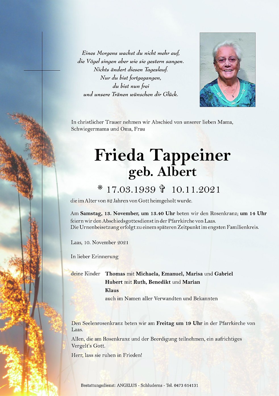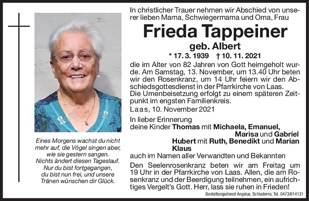 Bestattungsdienst: ANGELUS - Schluderns - Tel. 0473 614131
