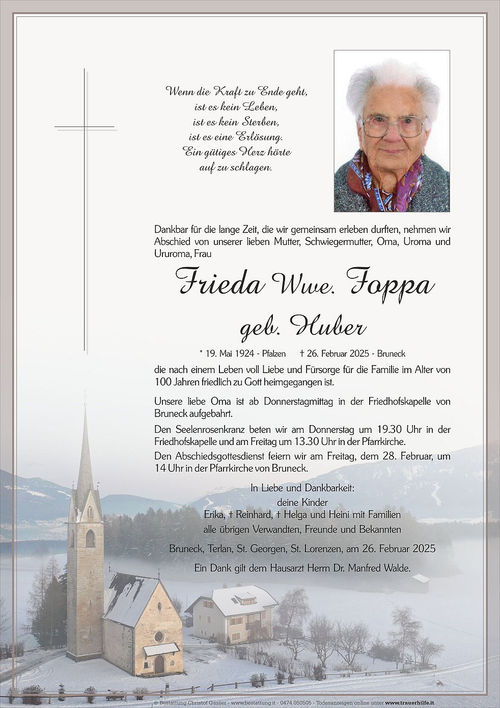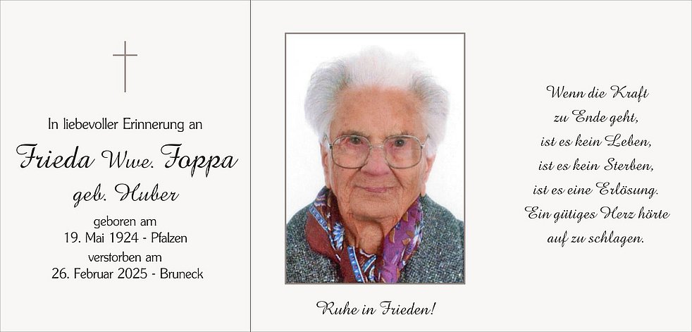* 19. Mai 1924 - Pfalzen † 26. Februar 2025 - Bruneck