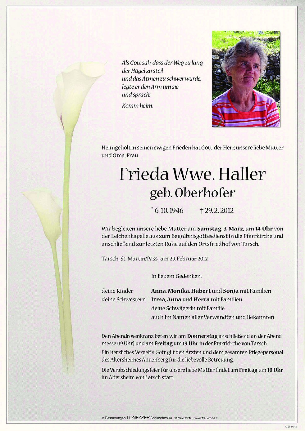 Die Verabschiedungsfeier für unsere liebe Mutter findet am Freitag um 10 Uhr im Altersheim von Latsch statt.