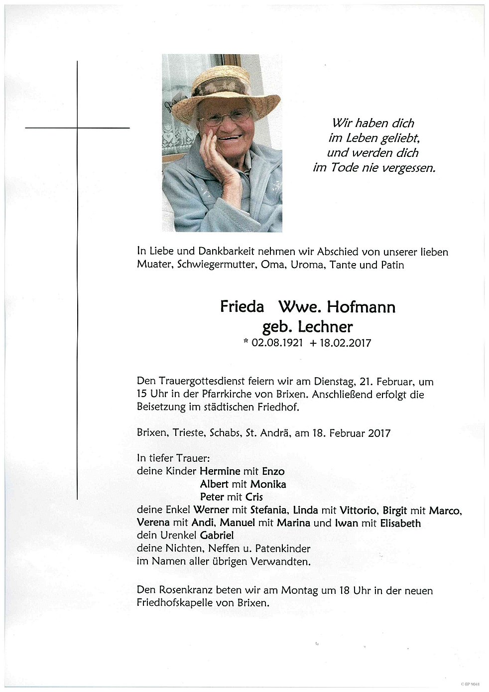 Den Trauergottesdienst feiern wir am Dienstag, 21. Februar, um 15 Uhr in der Pfarrkirche von Brixen. Anschließend erfolgt die Beisetzung im städtischen Friedhof.