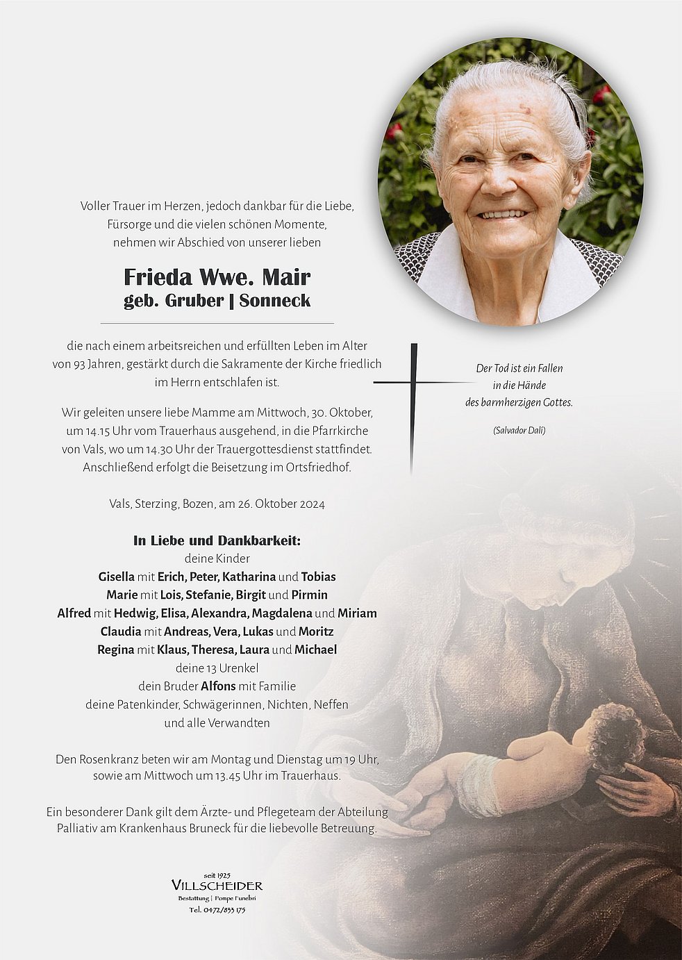 Trauerfeier: 30.10. - 14:30 Uhr Vals