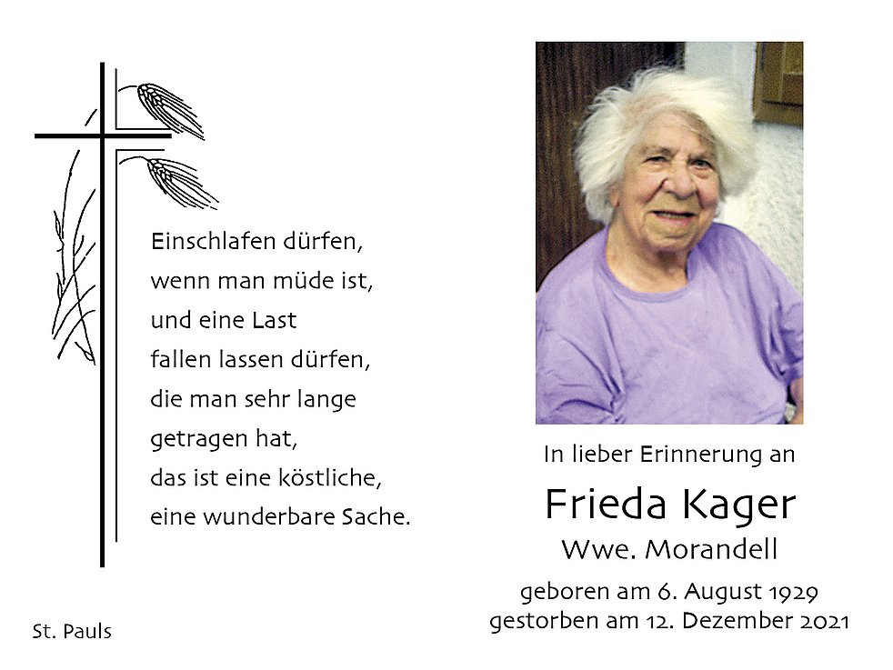 Wir danken dem Sohn Roland für die aufopfernde Pflege und Betreuung.