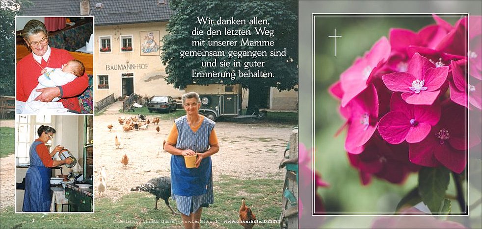 Ein herzlicher Dank gilt allen, die unsere liebe Mamme gepflegt, begleitet und besucht haben und sie weiterhin in liebevoller Erinnerung behalten.