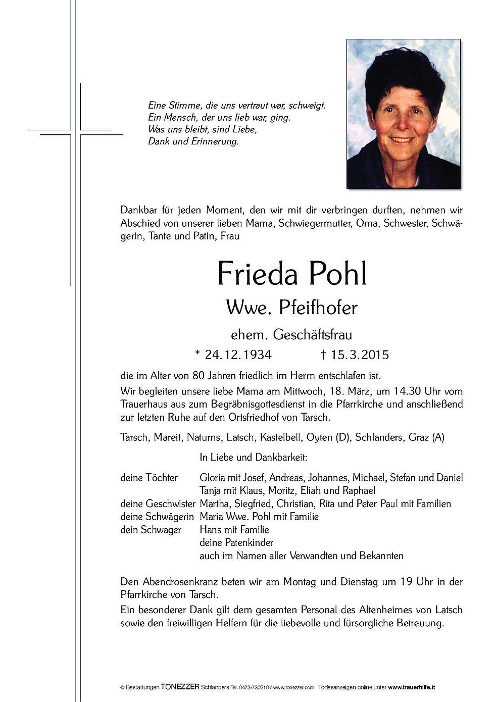 Wir begleiten unsere liebe Mama am Mittwoch, 18. März, um 14.30 Uhr vom Trauerhaus aus zum Begräbnisgottesdienst in die Pfarrkirche und anschließend zur letzten Ruhe auf den Ortsfriedhof von Tarsch.