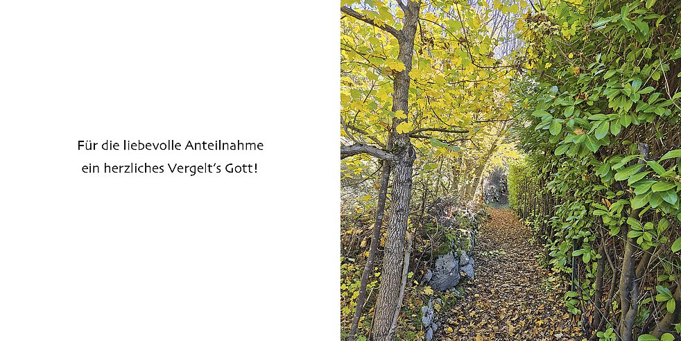 Allen, die am Rosenkranz und an der Beerdigung teilnehmen, im Voraus ein herzliches Vergelt´s Gott.
