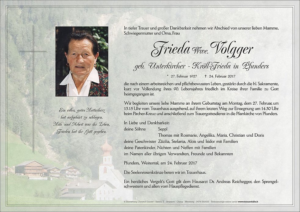 geb. Unterkircher - Kröll-Frieda in Pfunders