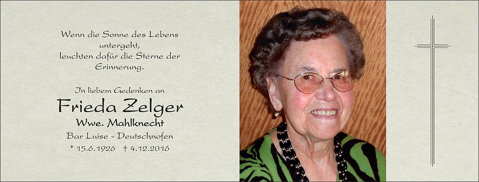 die nach einem erfüllten Leben zu Gott heimgekehrt ist.
