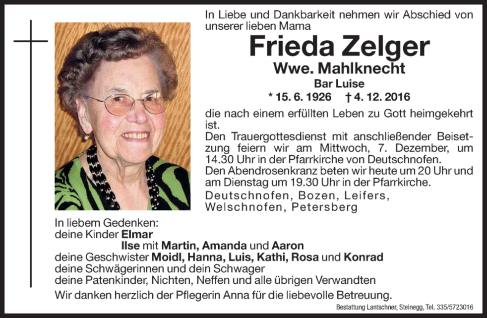 Mittwoch, 7. Dezember, um 14.30 Uhr in der Pfarrkirche von Deutschnofen.