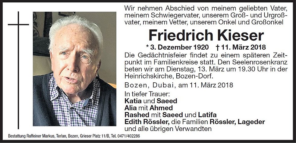 Wir nehmen Abschied von meinem geliebten Vater, meinem Schwiegervater, unserem Groß-und Urgroßvater, meinem Vetter, unserem Onkel und Großonkel