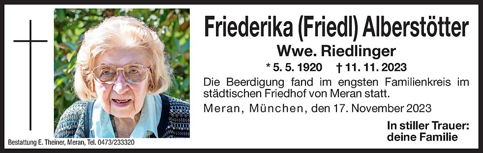 Die Beerdigung fand im engsten Familienkreis im städtischen Friedhof von Meran statt.
