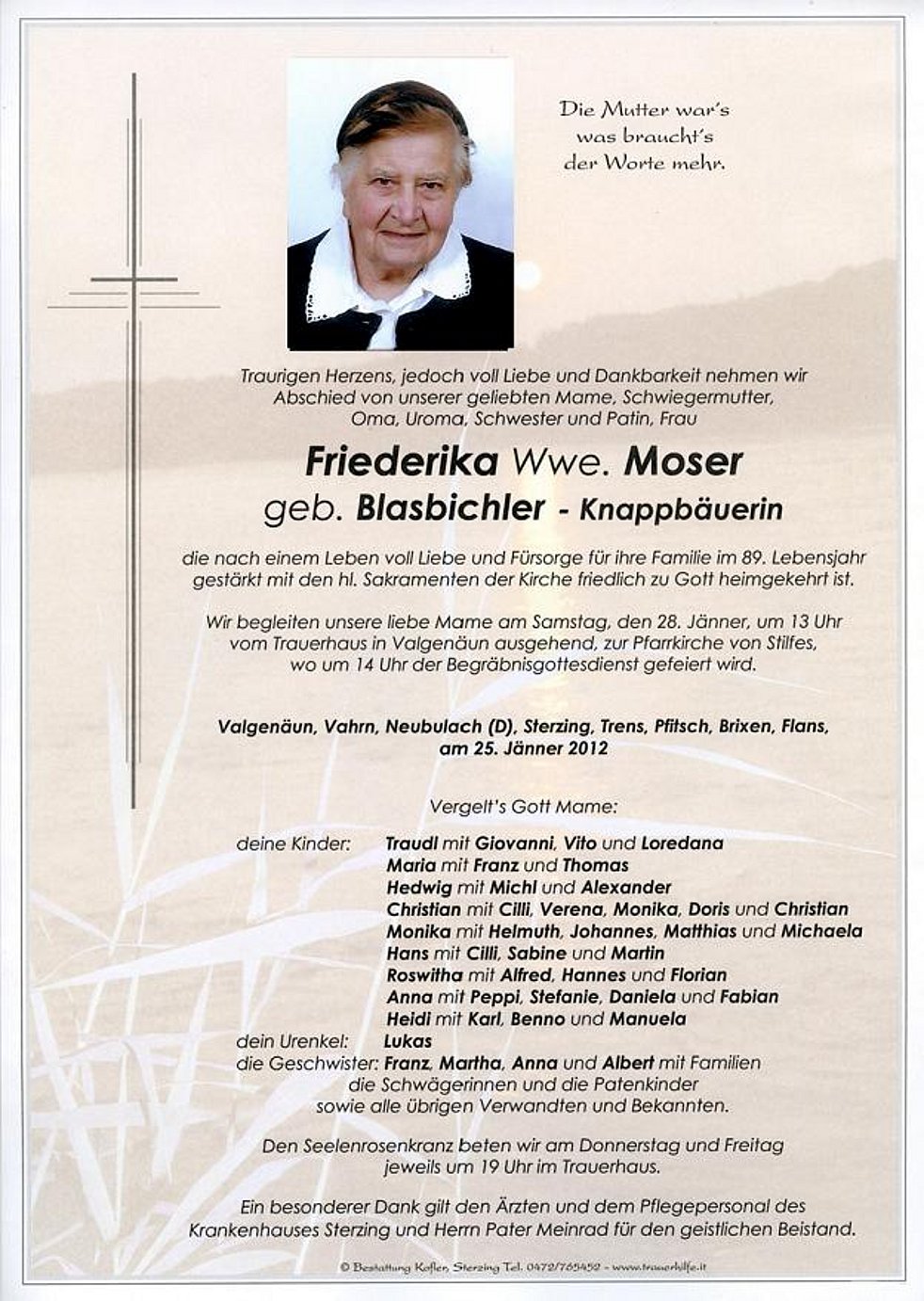 Wir begleiten unsere liebe Mame am Samstag, den 28. Jänner, um 13 Uhr