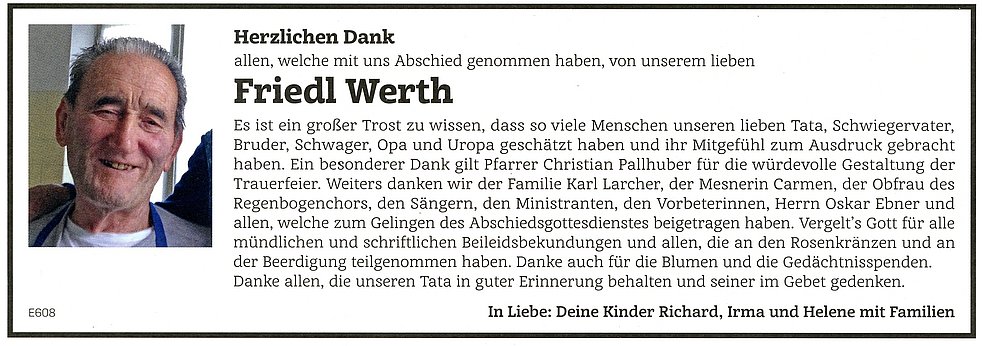Ein besonderer Dank gilt dem Hausarzt Dr. Norbert Tinkhauser und der Sonntagskartenrunde.
