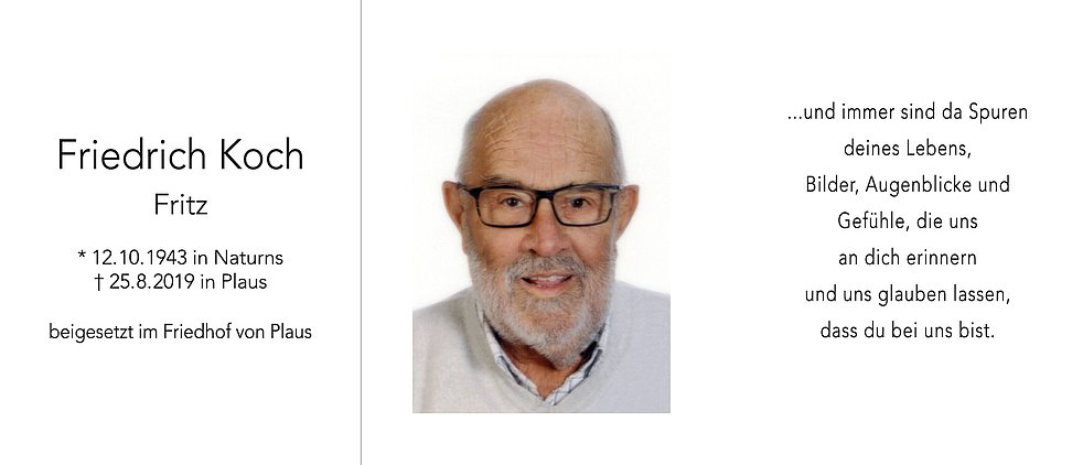 * 12.10.1943 in Naturns † 25.8.2019 in Plaus