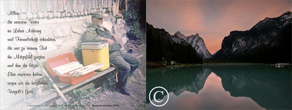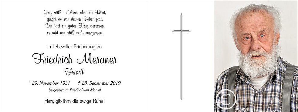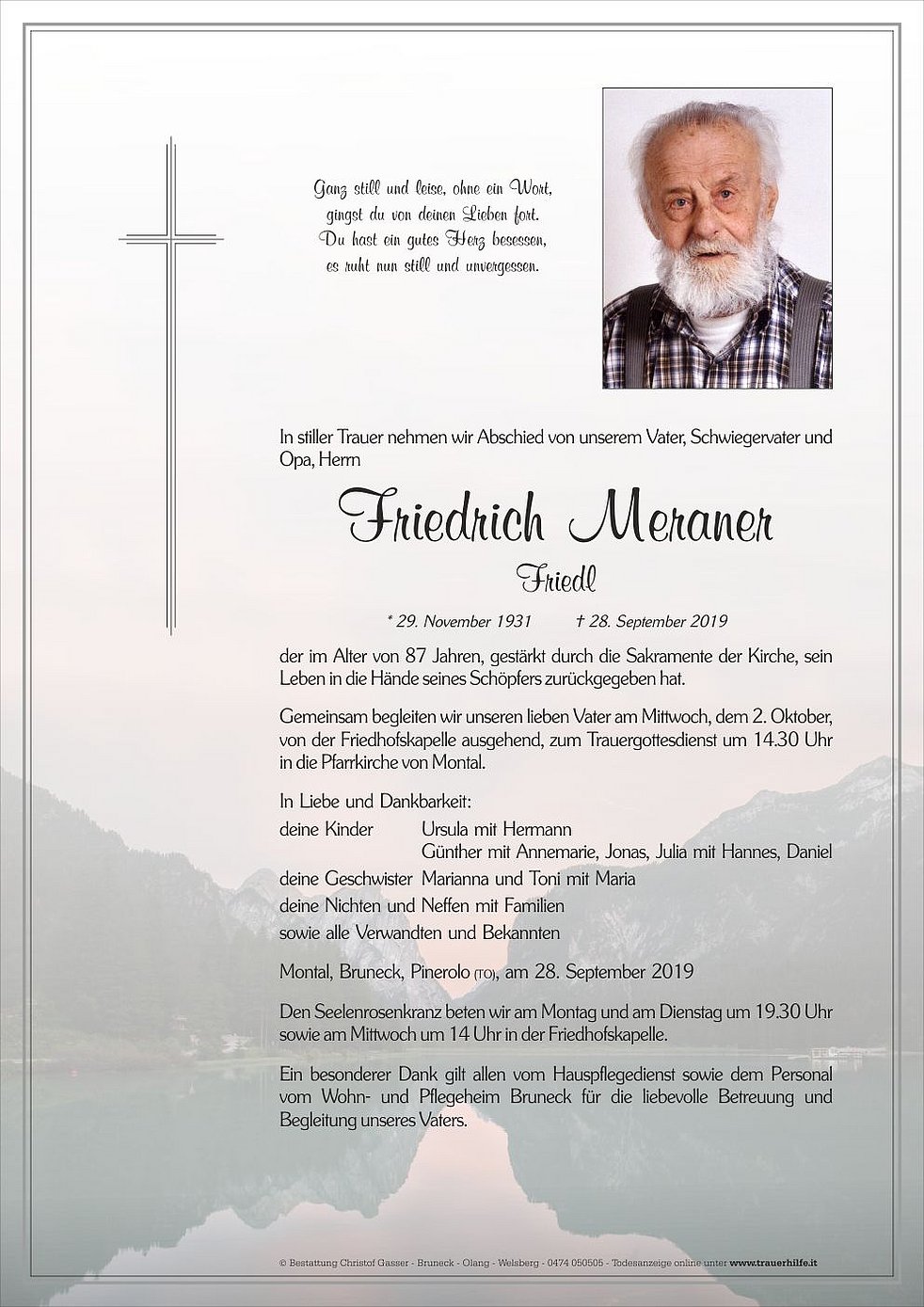 Ein besonderer Dank gilt allen vom Hauspflegedienst sowie dem Personal vom Wohn- und Pflegeheim Bruneck für die liebevolle Betreuung und Begleitung unseres Vaters.