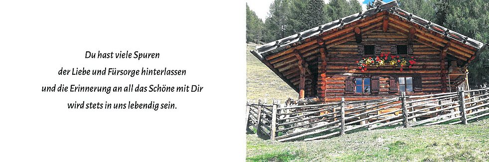 WORTE - wir haben keine gefunden,die ausdrücken,was wir empfinden. ANTWORTEN - keine, die Euch helfen können,nur Gedanken,die Euch begleiten und unsere Anteilnahme und unser Mitgefühl die Euch ein wenig Trost spenden sollen. In Gedanken und im Gebet sind wir bei Euch. In Verbundenheit Fam. Laimer Willi Gsies.