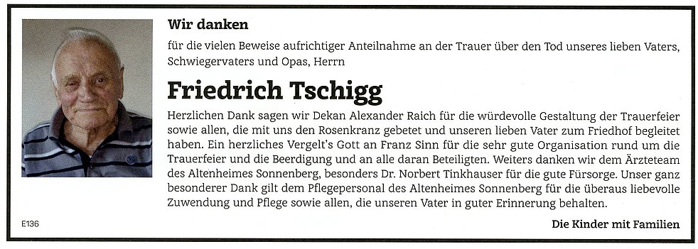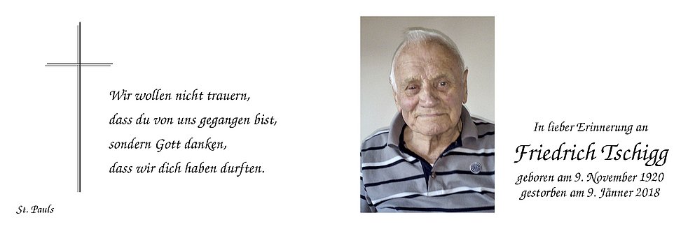 Den Trauergottesdienst feiern wir am Samstag, dem 13. Jänner um 14 Uhr in der Pfarrkirche von St. Pauls. Anschließend begleiten wir unseren lieben Verstorbenen auf den Ortsfriedhof.