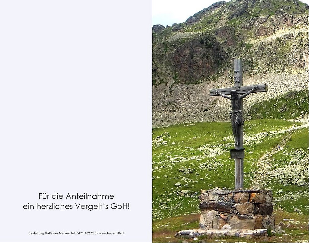 Allen, die an der Trauerfeier teilnehmen, ein herzliches Vergelt’s Gott.