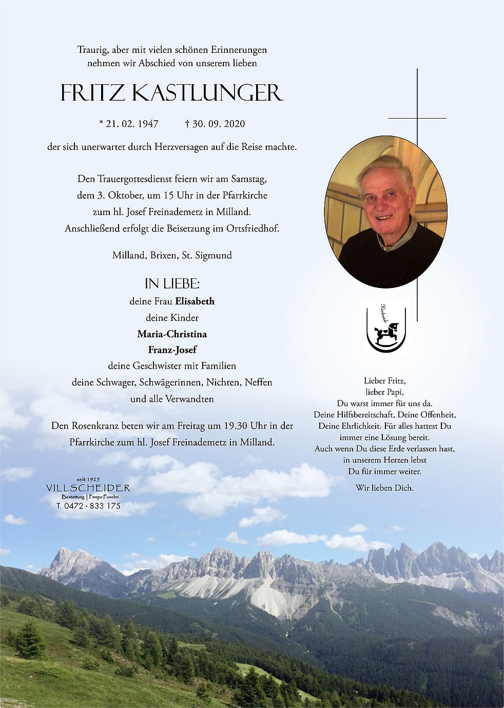 Fritz war seit Kindheit immer Freund unserer Familie besonders meines Bruders und seiner Familie. Den Angehörigen mein aufrichtiges Mitge-