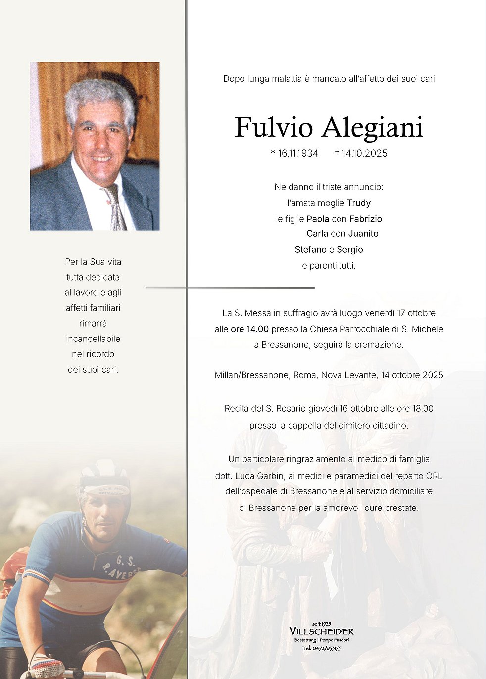 Begräbnisgottesdienst: 17.10. - 14:00 Uhr Brixen | Bressanone