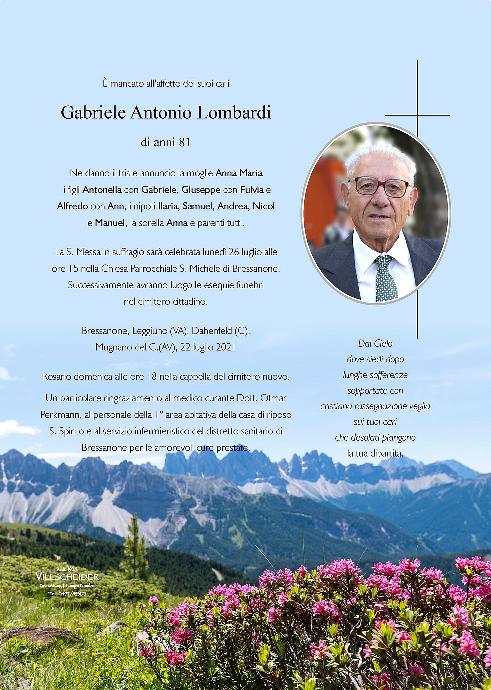 Begräbnisgottesdienst: 26.07. - 15:00 Uhr Brixen; Bressanone