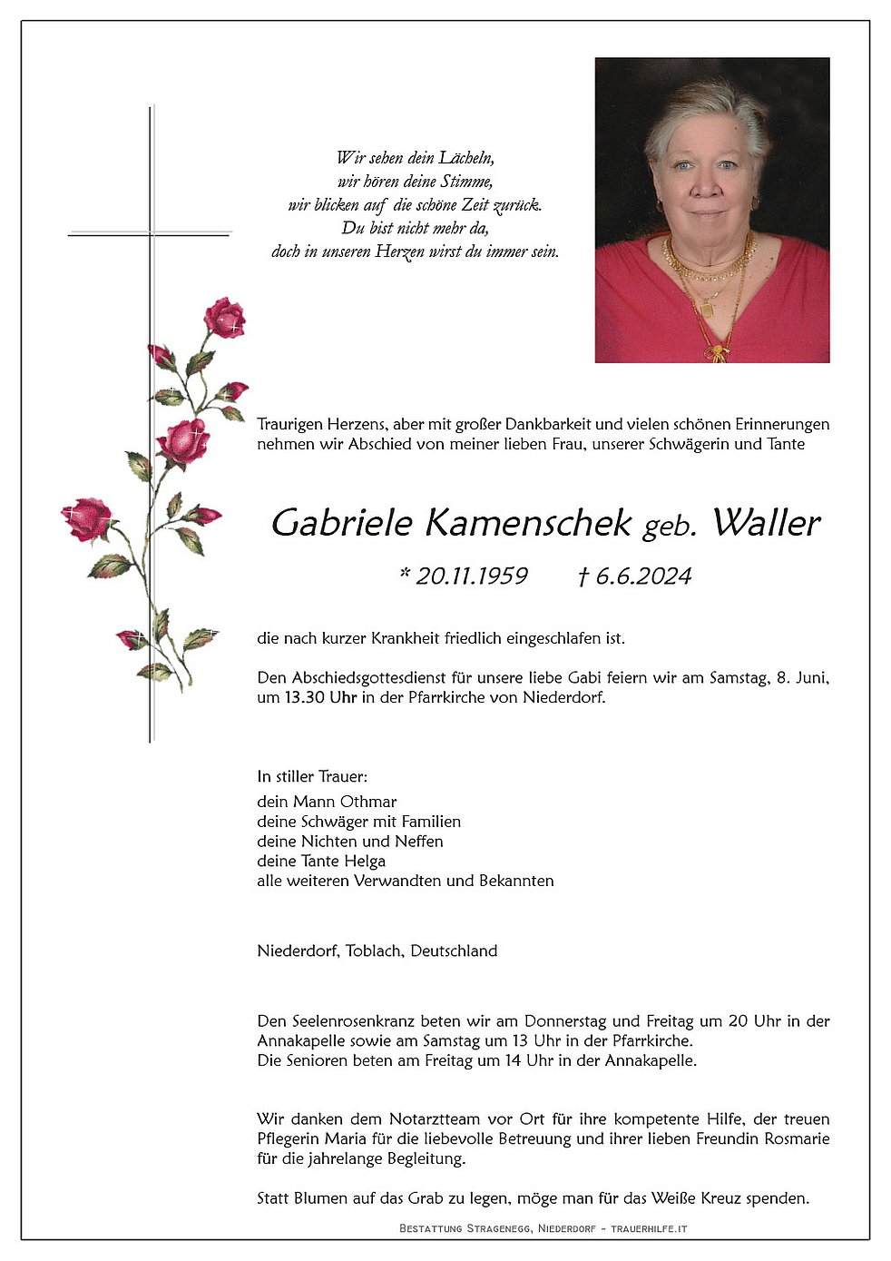 Gute Reise liebe Gabi❤❤❤dir Othmar unser aufrichtiges Mitgefühl🌹🌹🌹