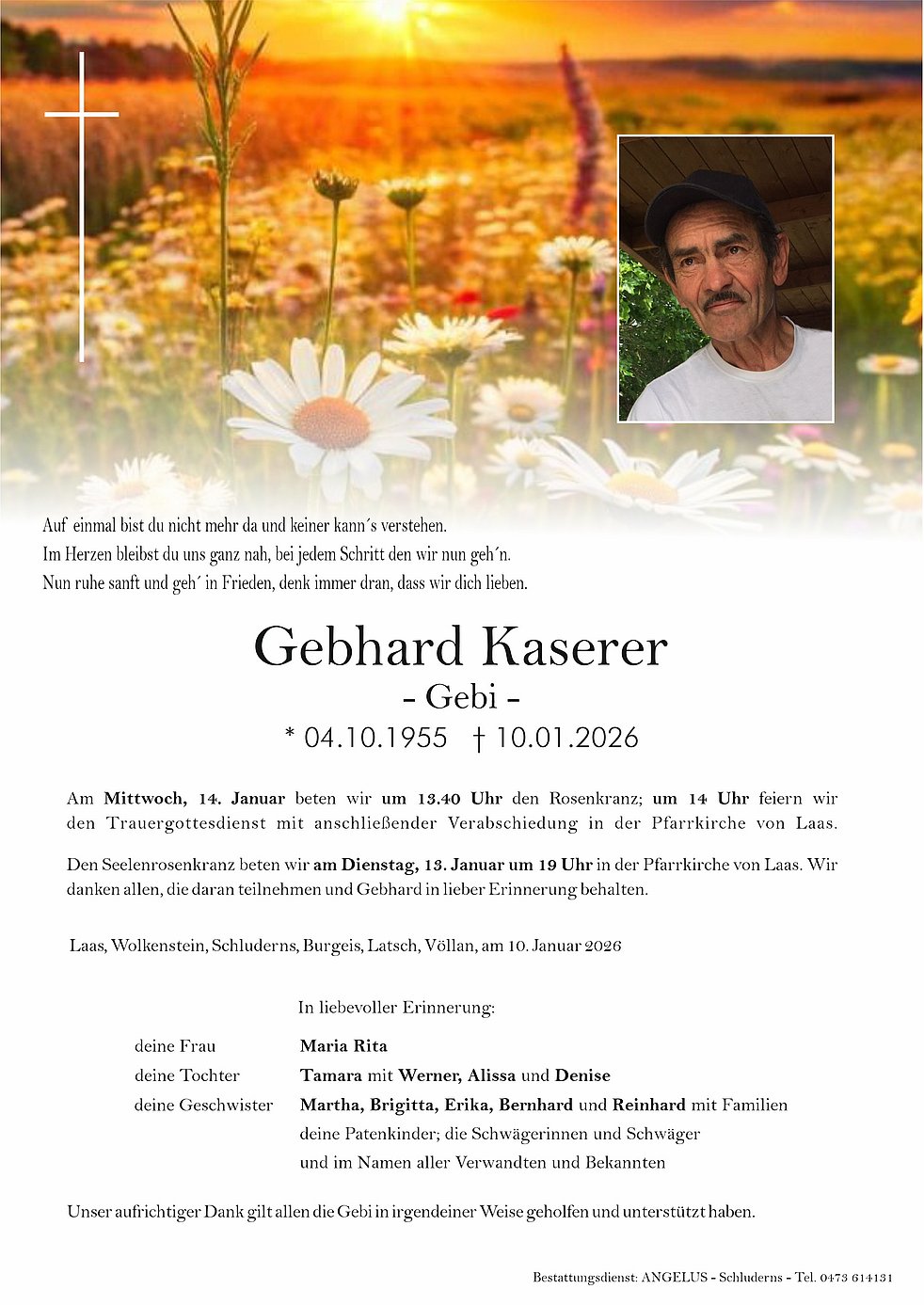 Lieber Gebi, es isch nit zu begreifen, dass du nimmer do bisch. Ins bleib die Erinnerung an insre gemeinsame Zeit in Ungarn: du worsch ein so feiner, wormherziger Mensch offen, ehrlich voller Güte und olls so echt. Spater sein mir durch viele Telefonate verbunden blieben.