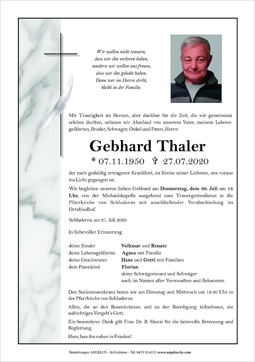 Wir begleiten unseren lieben Gebhard am Donnerstag, dem 30. Juli um 14 Uhr, von der Michaelskapelle ausgehend zum Trauergottesdienst in die Pfarrkirche von Schluderns mit anschließender Verabschiedung im Ortsfriedhof.