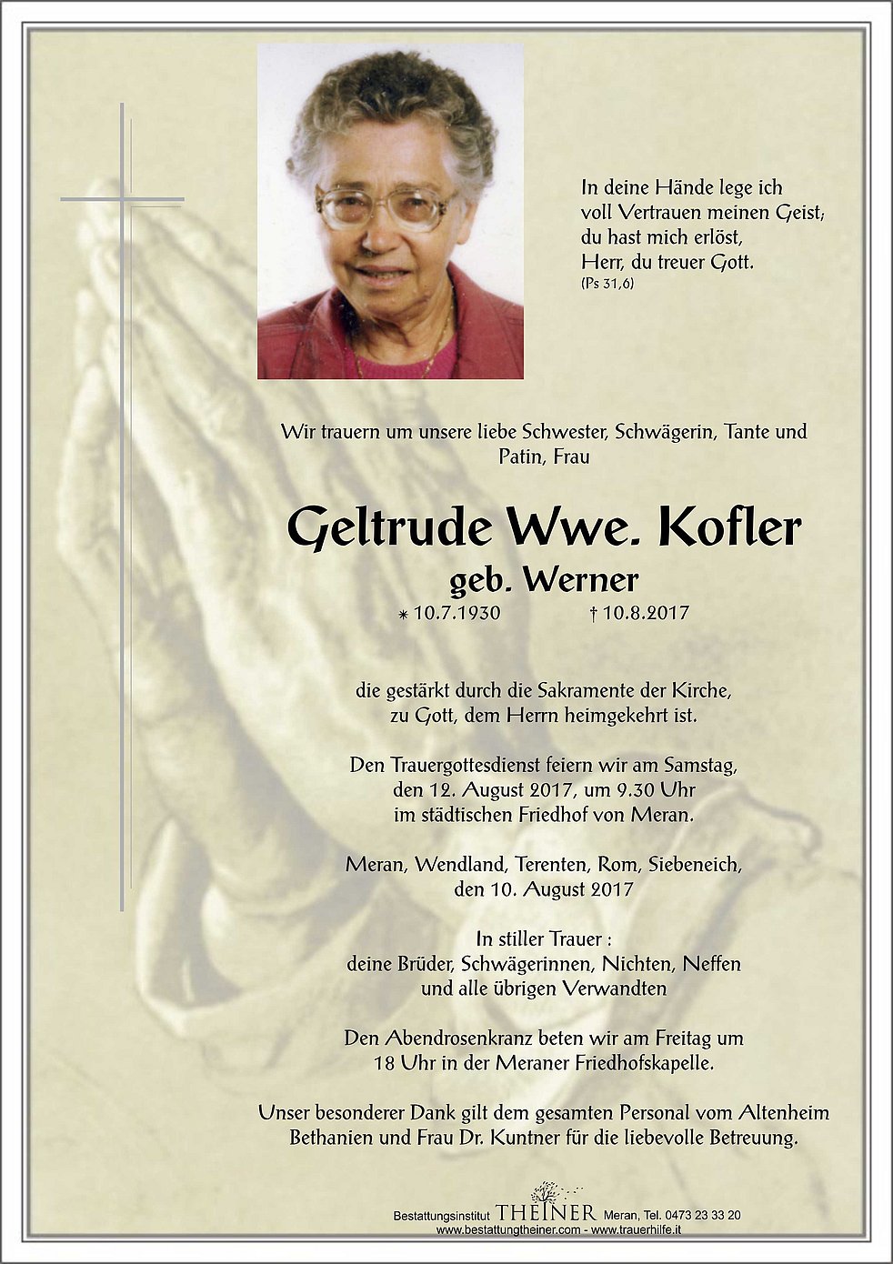 Den Trauergottesdienst feiern wir am Samstag, den 12. August 2017, um 9.30 Uhr im städtischen Friedhof von Meran.