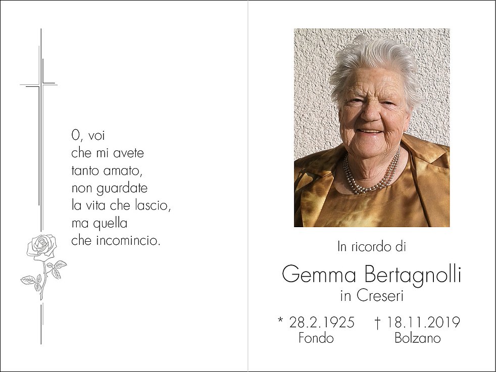 La S. Messa in suffragio con successiva benedizione verrà celebrata venerdì 22 novembre alle ore 11.00 nella chiesa dei Carmelitani in via Col di Lana a Bolzano.