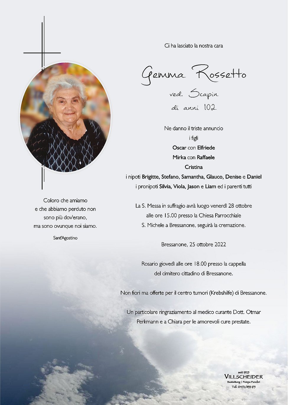 Begräbnisgottesdienst: 28.10. - 15:00 Uhr Brixen; Bressanone