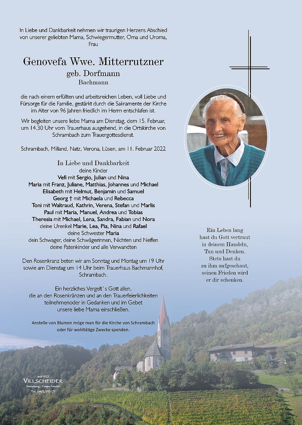 Eine Mutter ist wie die Wurzel eines Baumes ist Ursbrung und Kraft Antrieb Halt und Leben und die Wurzeln reichen viel tiefer und weiter als das Auge je zu erkennen vermag Liebe Bochmonnfamilie unser aufrichtiges Beileid zum Tod eurer lieben Mutter Schwiegermutter und Oma Zita und Luis Waldboth